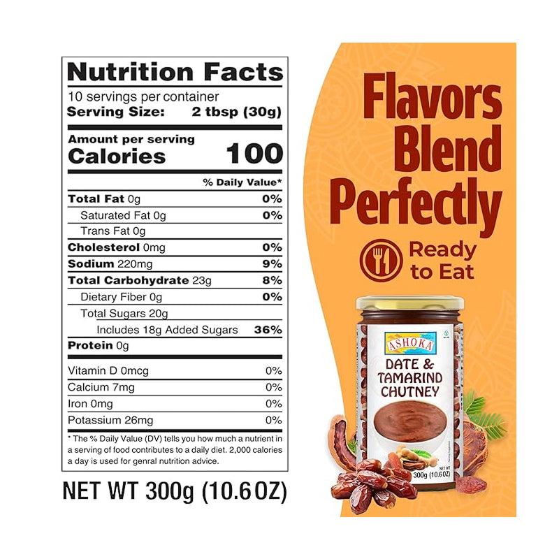 Ashoka Date & Tamarind Chutney is a sweet and tangy condiment crafted from natural dates and tamarind, blended with mild spices. It adds a rich, flavorful, and slightly tangy twist to snacks, chaats, and meals, enhancing your dishes with authentic Indian taste.