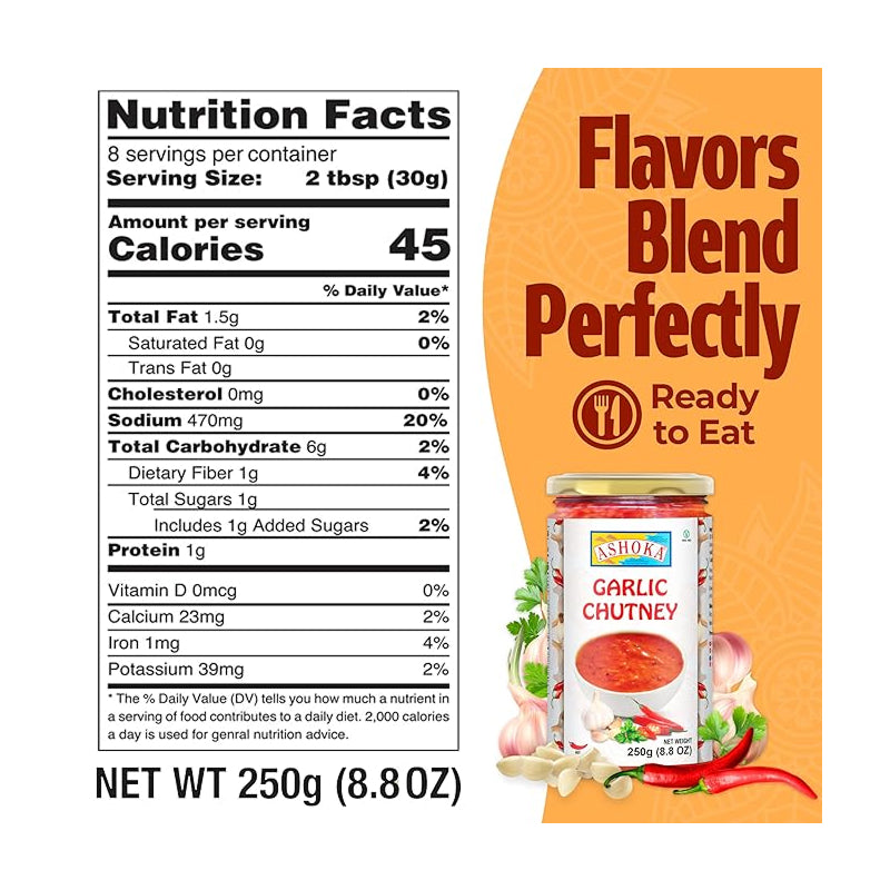 Ashoka Garlic Chutney is a spicy and flavorful condiment made from red chillies and garlic. It delivers a bold, tangy taste that perfectly complements snacks, sandwiches, and meals, adding a zesty kick to your dishes.
