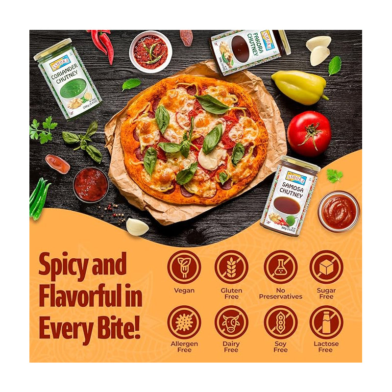 Ashoka Mint Chutney is a fresh and aromatic condiment made from natural mint leaves blended with mild spices. It adds a cool, flavorful, and zesty touch to sandwiches, snacks, appetizers, and traditional Indian dishes.