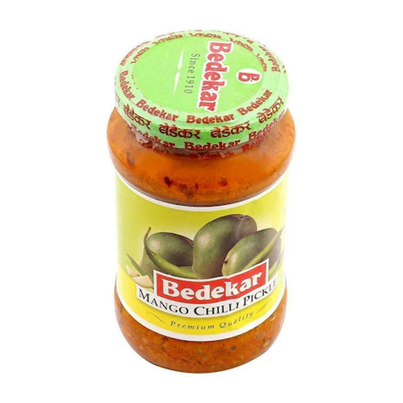 Bedekar Mango Chilli Pickle is a zesty, fiery condiment crafted from sun-kissed Rajapuri mangoes and vibrant green chilies, blended with a traditional mix of spices including mustard, turmeric, and asafoetida. This authentic Indian pickle delivers a bold, tangy flavor with a spicy kick, making it a perfect companion for parathas, rice, or curries. Rooted in Maharashtra’s culinary heritage, it adds a burst of traditional zest to every meal, enhancing the dining experience with its rich, handcrafted taste.