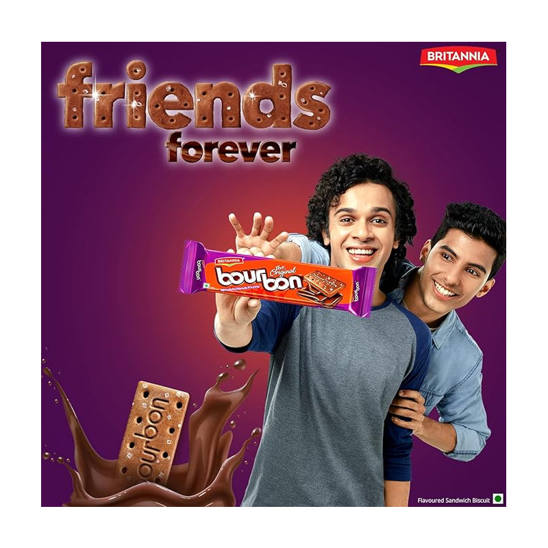 Britannia Bourbon Biscuits are one of the most loved chocolate cream-filled biscuits. With a crunchy cocoa biscuit sandwiching a rich, smooth chocolate cream, it offers the perfect balance of crunch and indulgence. A delightful treat for kids and adults alike, these biscuits are perfect for snacking, tea-time, or as a sweet indulgence any time of the day.