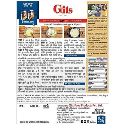 • Mix the GITS Khatta Dhokla Mix with water and oil as per package instructions to form a smooth batter.