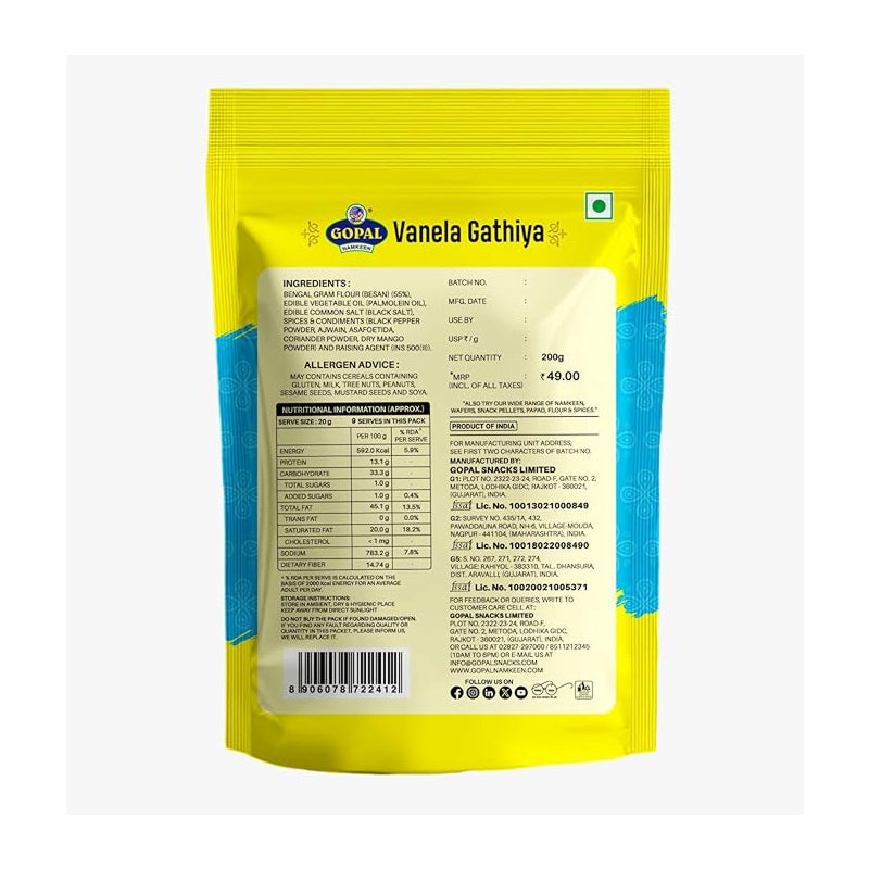 Gopal Vanela Gathiya is a soft and mildly spiced Gujarati snack made from gram flour. This popular tea-time delicacy is light, savory, and pairs perfectly with fried chilies or chutney. A true taste of Gujarat in every bite.