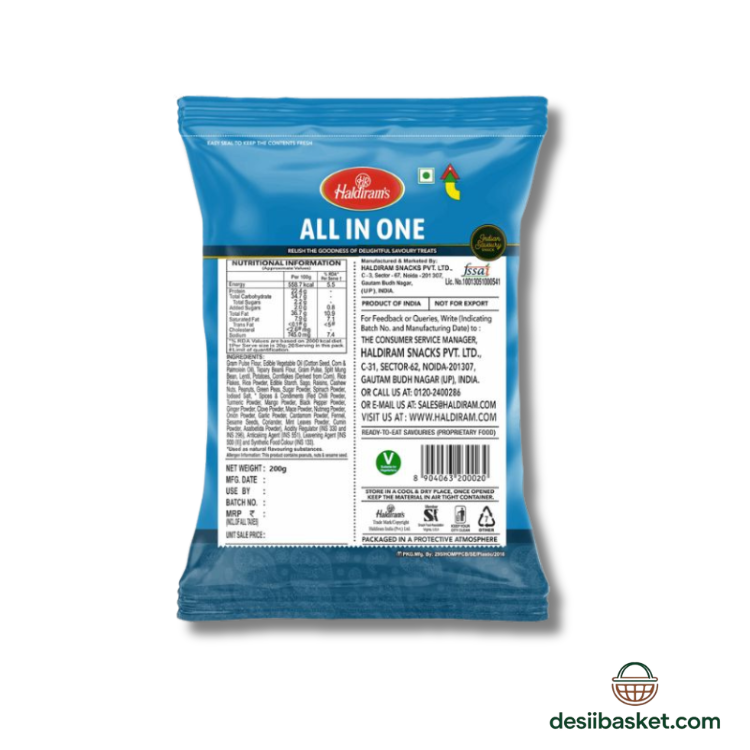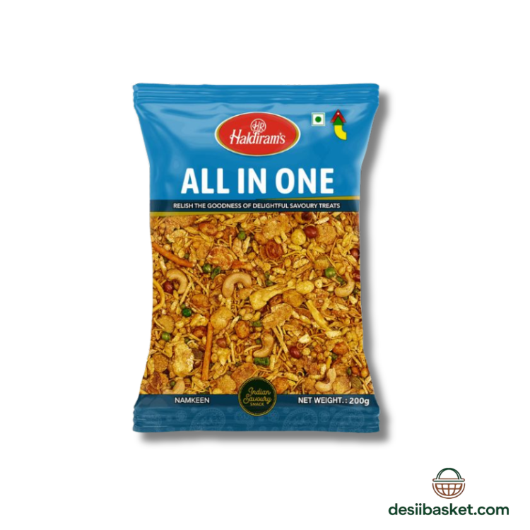 Haldiram's All In One Namkeen is a vibrant medley of crispy sev, roasted nuts like peanuts and cashews, and a dynamic blend of Indian spices, delivering a crunchy, savory delight in every handful. Infused with authentic flavors like cumin, chaat masala, and a hint of tangy amchur, this snack captures the essence of North India’s bustling street food culture. Made with premium, natural ingredients and no artificial preservatives, it’s a versatile, vegetarian treat perfect for tea-time snacking, festive gatherings, or sharing with friends, offering a symphony of textures and tastes.