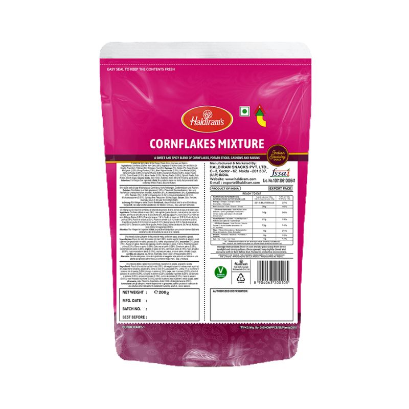 Haldiram's Cornflakes Mixture is a crispy, light snack combining golden-roasted cornflakes, crunchy nuts like peanuts and cashews, and a vibrant blend of Indian spices for a savory, mildly tangy flavor. Infused with hints of cumin, black pepper, and chaat masala, this mix captures the lively essence of North Indian street food culture. Made with natural ingredients and no artificial preservatives, it’s a wholesome, gluten-conscious choice for tea-time munching or festive gatherings, offering a delightful crunch that’s both satisfying and guilt-free.