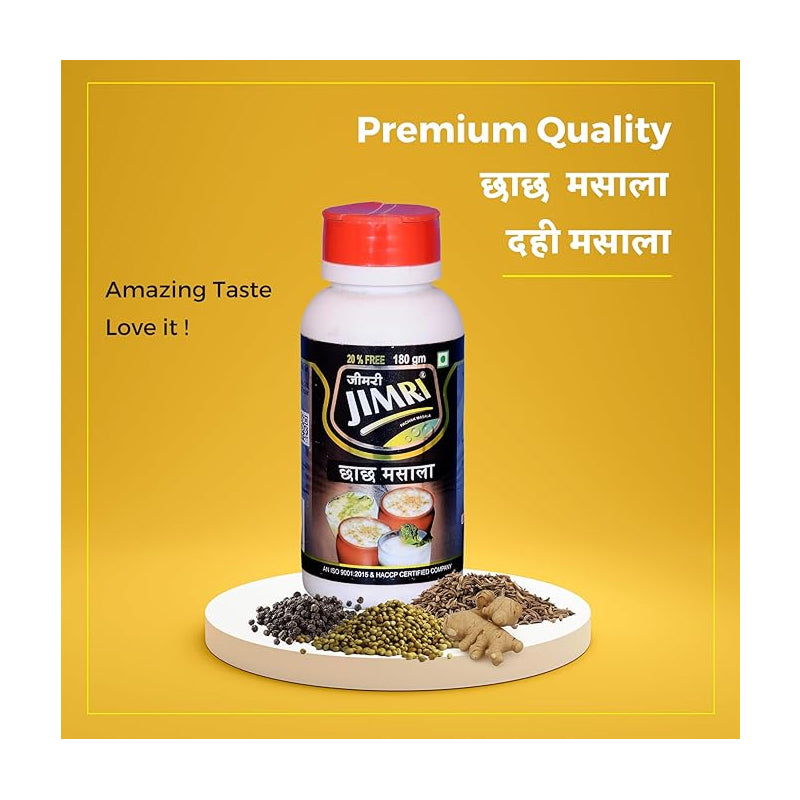JIMRI Chas Masala is a delightful spice blend crafted with roasted cumin, black salt, and a balanced mix of traditional spices. Specially designed to enhance the taste of buttermilk (chaas), this masala gives it a refreshing, tangy, and appetizing flavor. It not only elevates the taste but also aids digestion, making chaas the perfect cooling drink after meals.