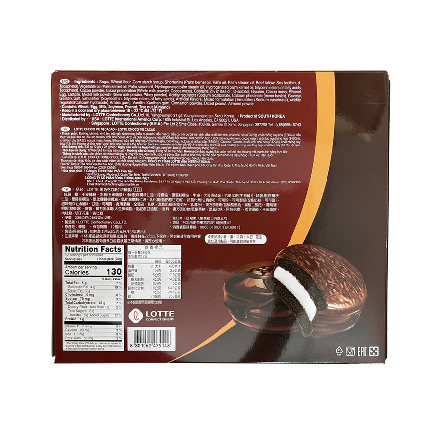 Lotte Choco Pie is a soft and spongy cake sandwich filled with creamy marshmallow and coated in smooth chocolate. Each bite offers a delightful sweet treat, perfect for snacking or enjoying as a dessert.How to Use