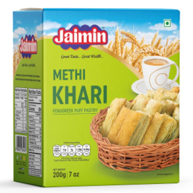 Jaimin Methi Khari is a crispy and flaky puff snack infused with the goodness of fenugreek leaves. Its light texture and savory taste make it the perfect companion for a hot cup of tea or as a delightful anytime snack. Conveniently packed, it’s great for home or on-the-go munching.