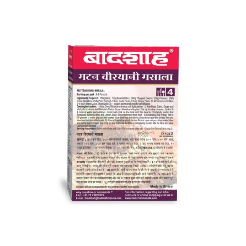 Badshah Mutton Biryani Masala is a special spice mix crafted to prepare rich, aromatic, and flavorful mutton biryani. Made with a perfect blend of traditional spices, this masala enhances the taste of tender mutton and fragrant basmati rice, giving you an authentic biryani experience at home.