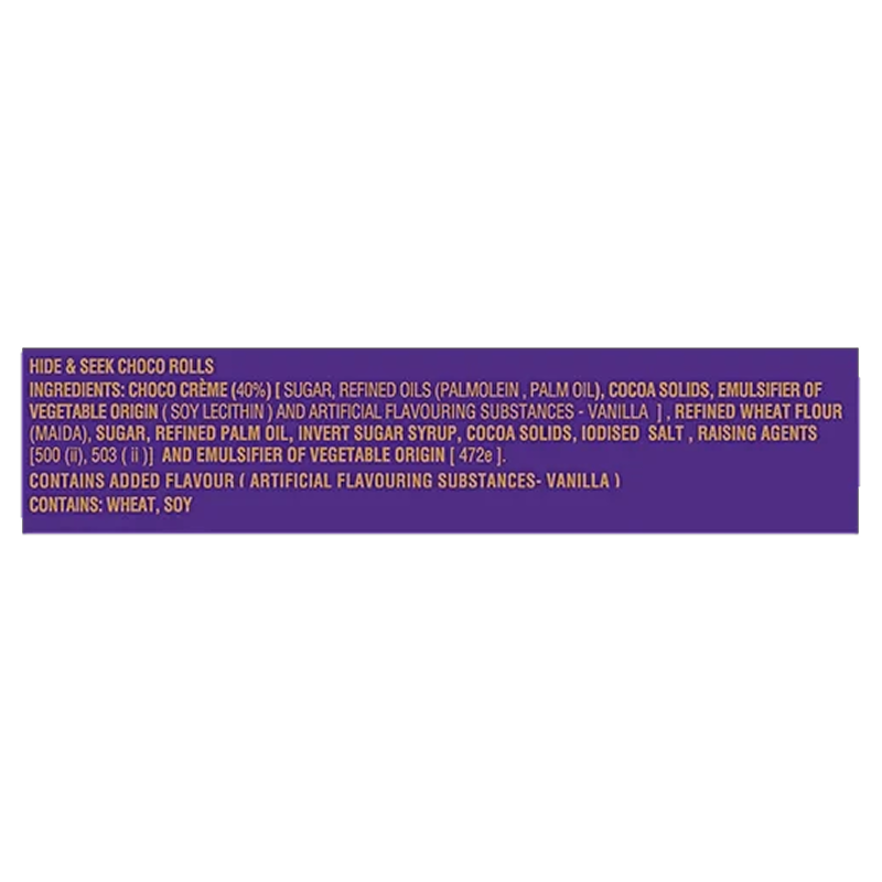 Parle Hide & Seek Choco Rolls are light, crispy wafer rolls filled with rich and creamy chocolate. With their crunchy texture and indulgent chocolate center, these rolls are perfect for satisfying sweet cravings. A delightful snack or dessert companion, they’re loved by kids and adults alike.How to Use