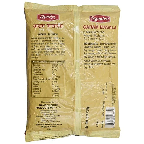 Ramdev Garam Masala is a premium, aromatic spice blend and a must-have for every Indian kitchen. Made from carefully selected whole spices, it brings warmth, depth, and a rich flavor to a variety of curries, gravies, and traditional Indian dishes.