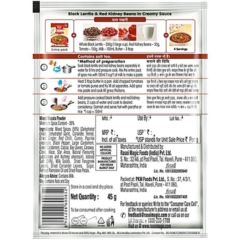 • Add 2–3 teaspoons of Rasoi Magic Dal Makhani Masala to cooked black lentils and kidney beans.