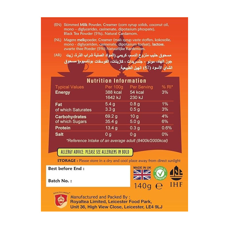 Royal Chai Karak Chai (Unsweetened) is a strong and aromatic instant tea mix crafted for those who enjoy bold flavors. With no added sugar, it gives you the flexibility to sweeten as you like or enjoy plain. Its rich taste makes it a perfect choice for a quick and satisfying tea experience, whether served with milk or water.