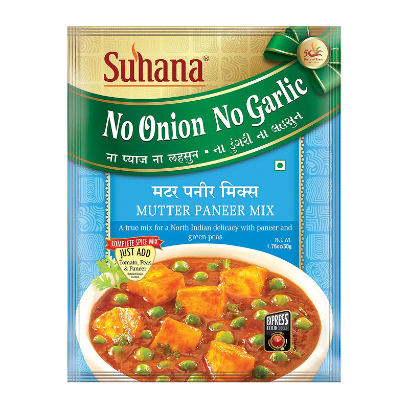 Suhana Matar Paneer Masala Mix (No Onion No Garlic ) is a premium blend of carefully selected spices, crafted to deliver rich taste and aroma while keeping the recipe free from onion and garlic. Perfect for preparing authentic, healthy, and delicious Matar Paneer at home.