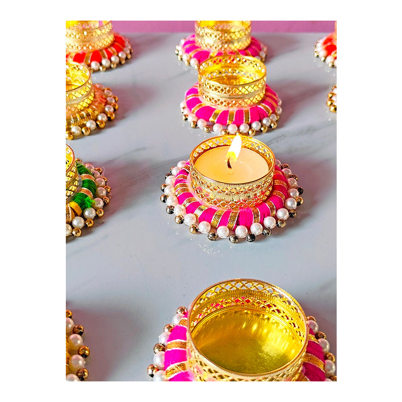 This elegant Tealight Candle Holder is a beautifully crafted accessory, designed to cradle tealight candles and cast a warm, inviting glow, perfect for enhancing festive occasions or everyday settings with a touch of South Asian charm. Made from high-quality materials with intricate detailing, it complements traditional Diwali celebrations or cozy dinner setups, evoking the serene ambiance of Indian homes adorned for festivals. Ideal for creating a soothing atmosphere, this holder brings the essence of Gujarat’s vibrant rangoli nights or Bengal’s puja evenings to your living space.