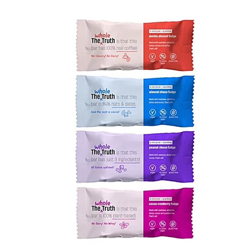 Fuel your day naturally with The Whole Truth Vegan Energy Bar – Fudge, a wholesome and delicious snack for any time of the day.